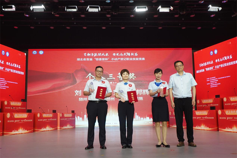 本次競賽是全國首屆不動產(chǎn)登記職業(yè)技能競賽的湖北省選拔賽,也是全面實施不動產(chǎn)統(tǒng)一登記制度以來,我省首次舉辦不動產(chǎn)登記職業(yè)技能競賽,在全省自然資源系統(tǒng)引起了較大反響。此次競賽內(nèi)容、考試大綱及競賽規(guī)則均按照全國不動產(chǎn)登記職業(yè)技能競賽的相關(guān)規(guī)定執(zhí)行,涵蓋黨建黨史知識、黨的二十大精神,不動產(chǎn)登記相關(guān)法律、法規(guī)、規(guī)范性文件,不動產(chǎn)登記操作實務(wù),窗口服務(wù)規(guī)范等內(nèi)容,優(yōu)勝選手將代表我省與全國各省選拔的優(yōu)秀選手進行交流學(xué)習、切磋技藝。全省17支隊伍,68名參賽選手,通過層層選拔,代表全省4000余名不動產(chǎn)登記工作人員參加此次競賽。經(jīng)過筆試、現(xiàn)場競答、代表展示等環(huán)節(jié)的激烈角逐,武漢市代表隊榮獲團體一等獎,咸寧市代表隊、孝感市代表隊榮獲團體二等獎,仙桃市代表隊、襄陽市代表隊、黃岡市代表隊榮獲團體三等獎;來自武漢市代表隊杜殿虎獲個人一等獎,來自黃岡市代表隊鄭鵬、荊門市代表隊侯雪婷獲個人二等獎,來自隨州市代表隊劉萌、鄂州市代表隊李芳、恩施州代表隊張邦輝獲個人三等獎。