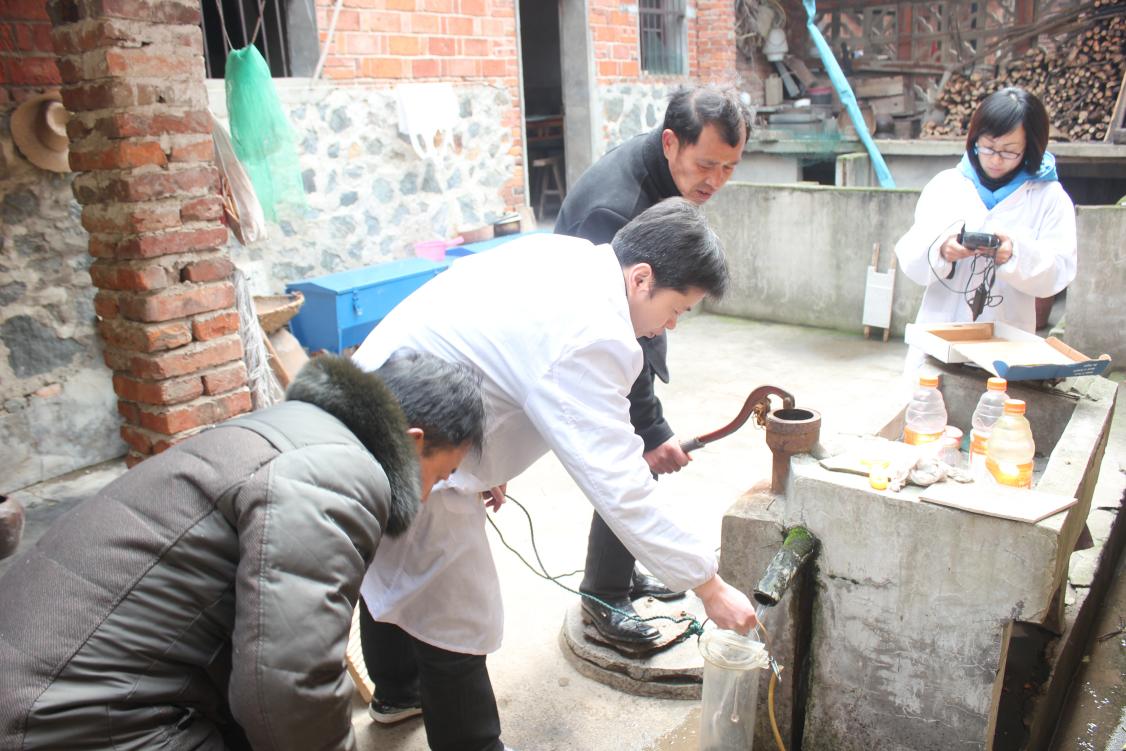 許燕琳(右一)正在監(jiān)測(cè)武穴地下水井水質(zhì)情況