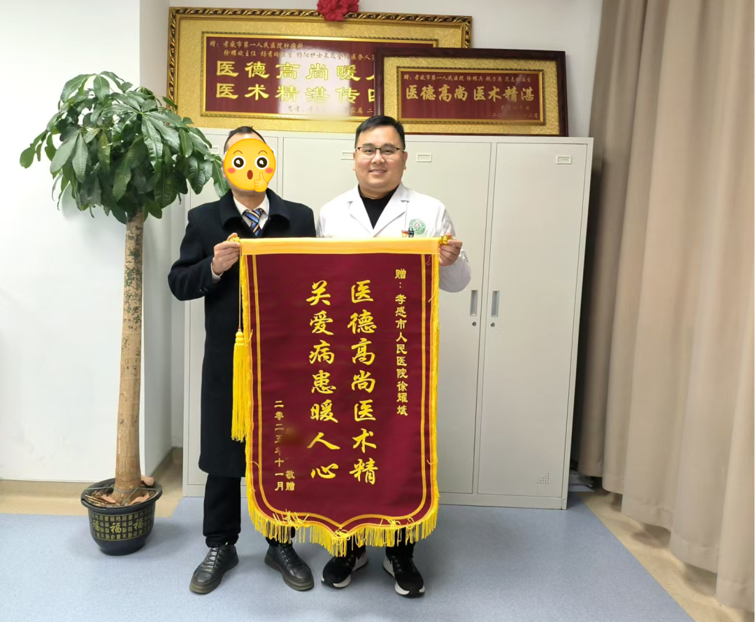 荊楚網(wǎng)(湖北日?qǐng)?bào)網(wǎng))訊(通訊員 王梅)近日,孝感市第一人民醫(yī)院腫瘤科內(nèi)暖意融融,患者楊先生將一面繡有“醫(yī)德高尚醫(yī)術(shù)精,關(guān)愛病患暖人心”的鮮紅錦旗,鄭重地送到腫瘤科副主任徐耀斌手中。這面錦旗,不僅承載著楊先生對(duì)徐耀斌的由衷感激,更見證了醫(yī)患之間的深厚情誼。
