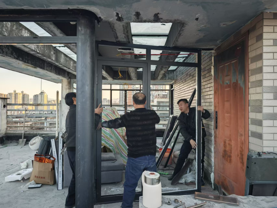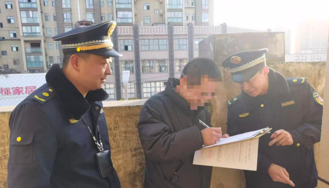 執(zhí)法人員現(xiàn)場(chǎng)拆除違規(guī)占用樓頂公共區(qū)域搭建陽(yáng)光房