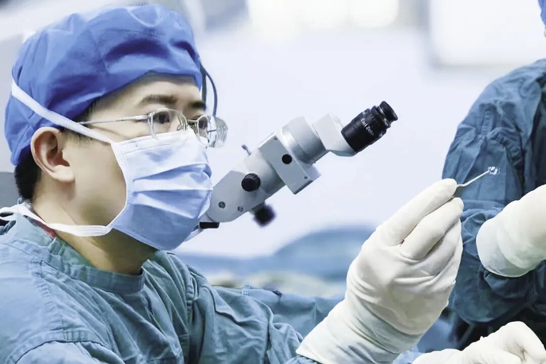 走進(jìn)眼科手術(shù)室,無影燈下的顯微手術(shù)臺(tái)宛如精密儀器車間。李銳主任正在為增殖性糖尿病視網(wǎng)膜病變患者實(shí)施微創(chuàng)玻璃體切除術(shù),厚度50微米的視網(wǎng)膜前膜、3微米的視網(wǎng)膜內(nèi)界膜,手術(shù)中可能需要?jiǎng)冸x,醫(yī)生就像是針尖上的舞者?!斑@種復(fù)雜的糖網(wǎng)手術(shù),三年前還需要轉(zhuǎn)診武漢,現(xiàn)在我們已經(jīng)獨(dú)立完成30例”器械護(hù)士輕聲介紹。