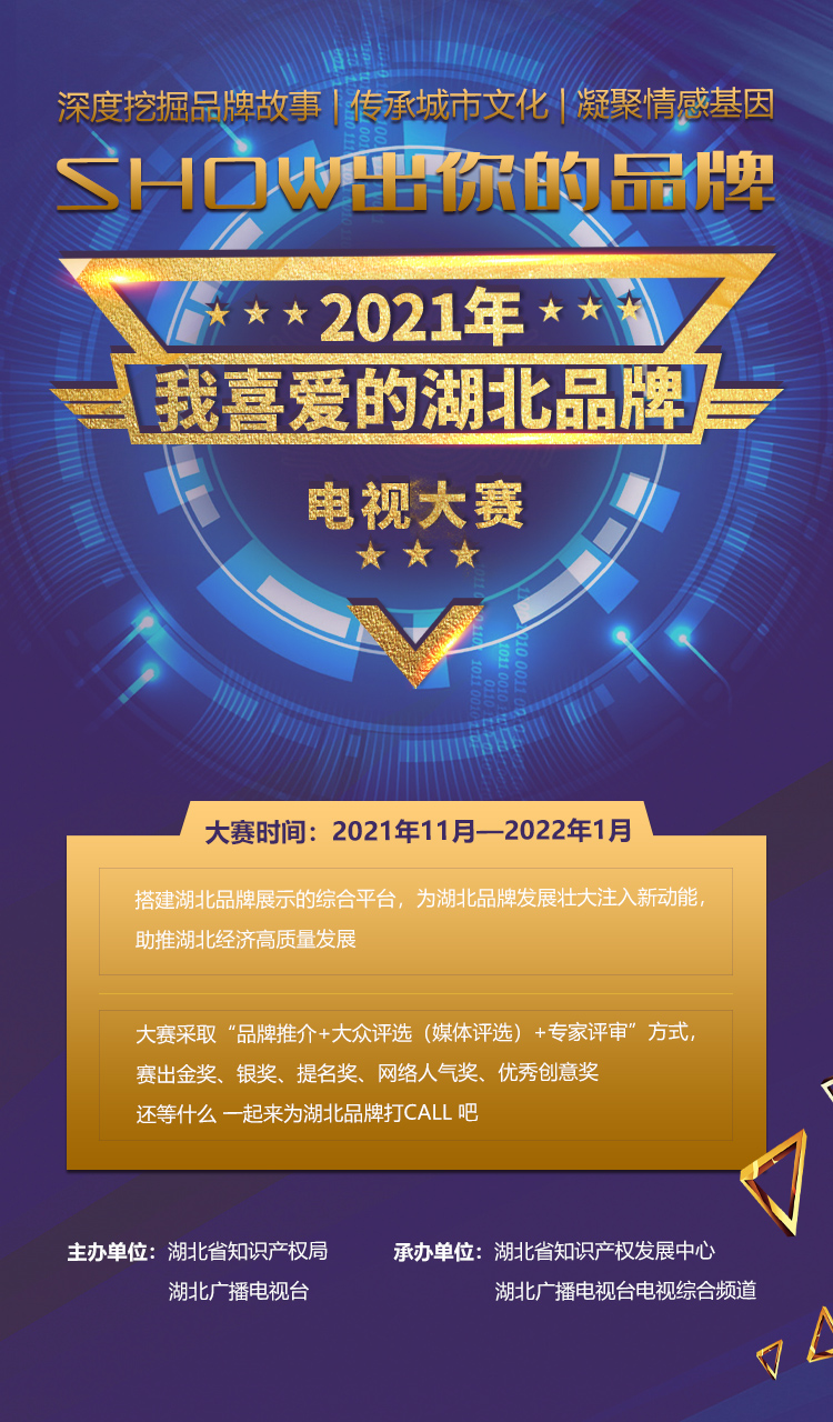 為推動(dòng)湖北制造向湖北創(chuàng)造轉(zhuǎn)變,增強(qiáng)全省品牌意識(shí),展示全省品牌成果,加快推進(jìn)品牌強(qiáng)省建設(shè),助力湖北經(jīng)濟(jì)社會(huì)高質(zhì)量發(fā)展。湖北省知識(shí)產(chǎn)權(quán)局與湖北廣播電視臺(tái)再度攜手,正式啟動(dòng)2021年“我喜愛的湖北品牌”電視大獎(jiǎng)賽。